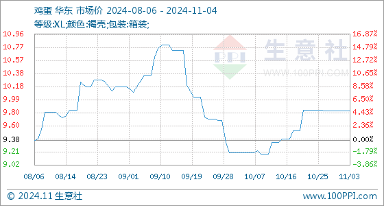 11月4日生意社鸡蛋基准价为9.82元/公斤