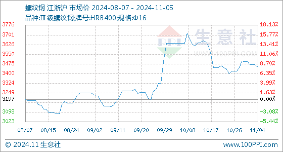 11月5日生意社螺纹钢基准价为3450.00元/吨