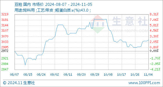 11月5日生意社豆粕基准价为3048.00元/吨