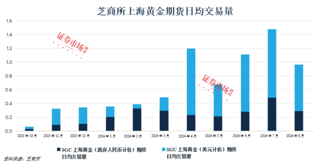 自上海金溢价创下历史新高以来,芝商所上海黄金期货以人民币和美元计价的上海黄金期货合约日均总成交量约为1公吨,其中二者的成交量占比分别约为35%和65%。投资者可通过组合运用这两种产品来实现对离岸人民币汇率的投资布局。美元计价合约也常与基准黄金期货合约搭配交易,用于中国与国际黄金价差的套利操作。