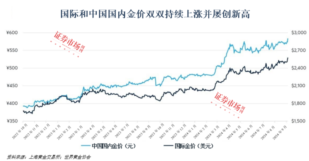 自2022年末以来,在全球各国央行持续强劲购入黄金、美元疲软、地缘政治紧张局势升级以及美联储降息预期(最终于9月18日落地)等多重因素推动下,黄金开启了一轮牛市行情。与此同时,中国金价波动更为显著,上海金溢价(即中国国内金价与国际金价之差)呈现剧烈震荡态势。