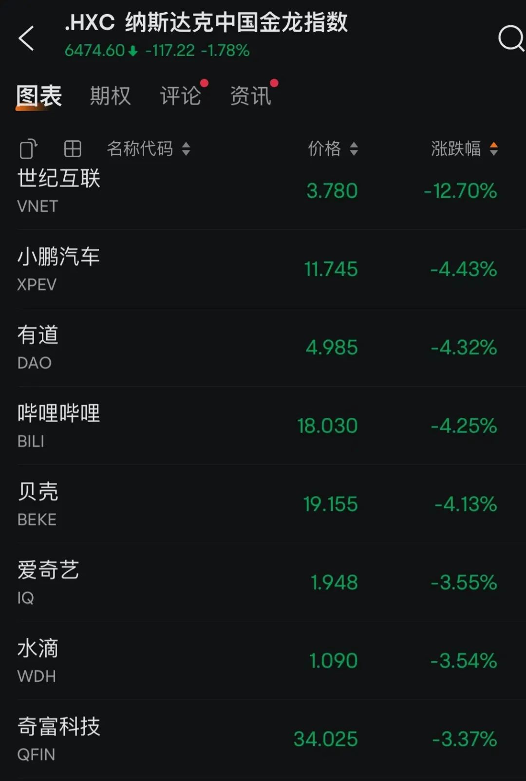 热门中概股中,小鹏汽车、哔哩哔哩跌逾4%,爱奇艺、理想汽车、阿里巴巴跌逾2%。