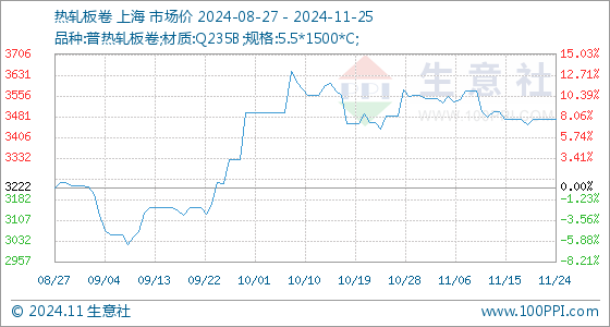 11月25日生意社热轧板卷基准价为3472.00元/吨