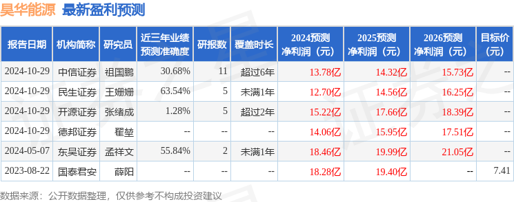西南证券股份有限公司黄腾飞近期对昊华能源进行研究并发布了研究报告《动力煤产能扩张,煤化运协同发展》,本报告对昊华能源给出买入评级,认为其目标价位为10.40元,当前股价为8.29元,预期上涨幅度为25.45%。