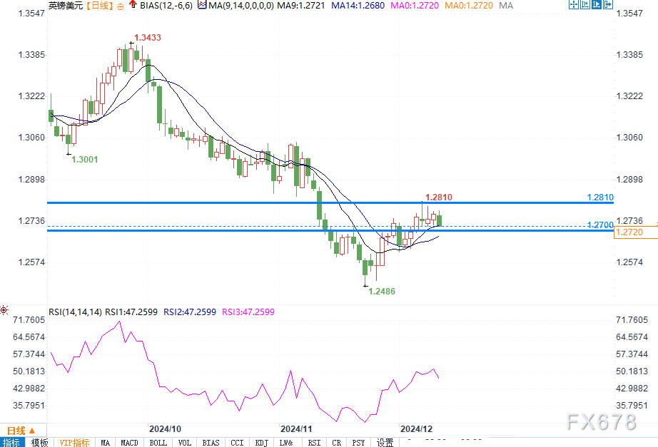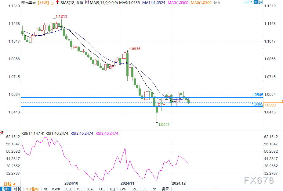 市场关注将于12月11日21:30公布的美国消费者通胀数据,结合本周四的欧洲央行会议:市场普遍预期欧洲央行将进一步降息25个基点;这可能令欧元继续承压。