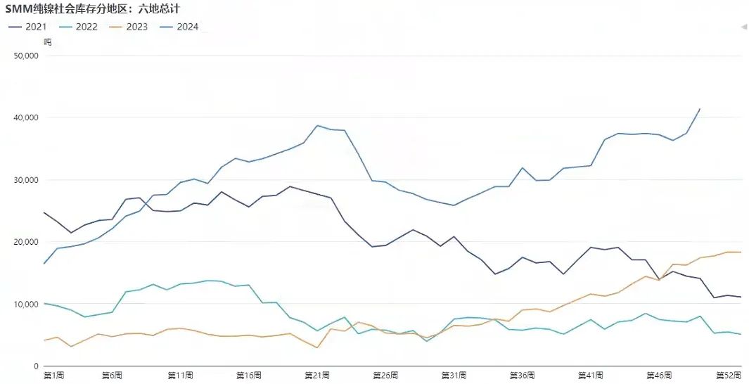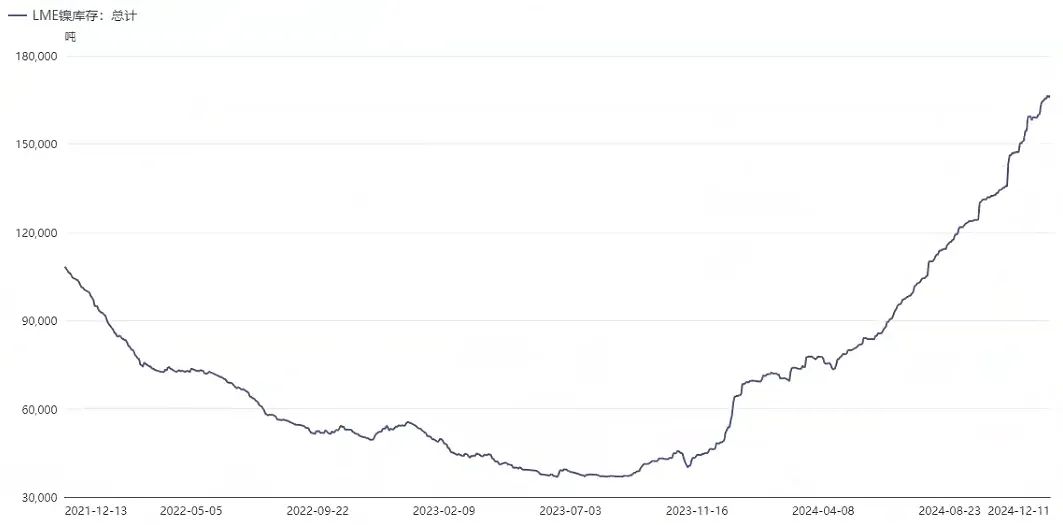 海外LME镍库存继续攀升,目前已增至16.6万吨左右,国内镍社会库存亦处于高位,在4.1万吨附近。