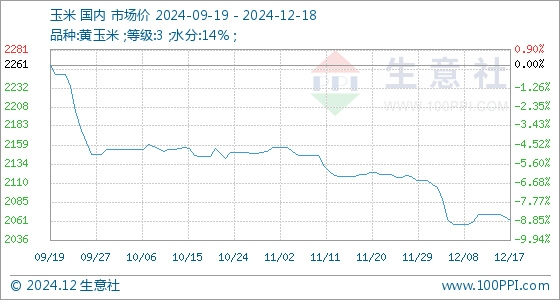 12月18日生意社玉米基准价为2061.43元/吨