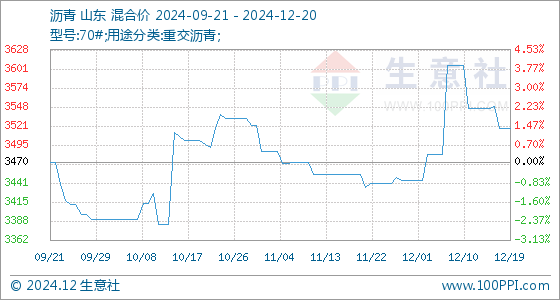 12月20日,生意社沥青基准价为3518.33元/吨,与本月初(3445.00元/吨)相比,上涨了2.13%。