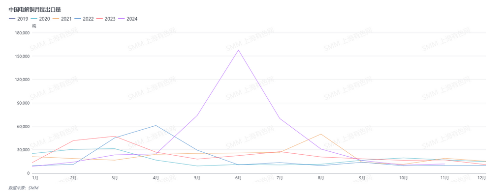 从出口方面来看,11月电解铜出口量为1.16万吨,环比增加13.32%。由于出口窗口持续处于关闭状态,仅长单电解铜被安排出口。