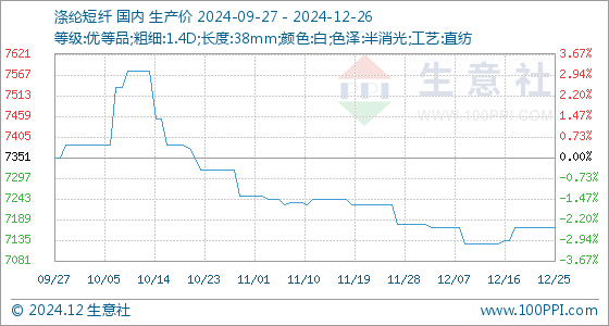 12月26日生意社涤纶短纤基准价为7168.33元/吨