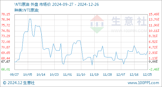 12月26日生意社WTI原油基准价为70.10美元/桶