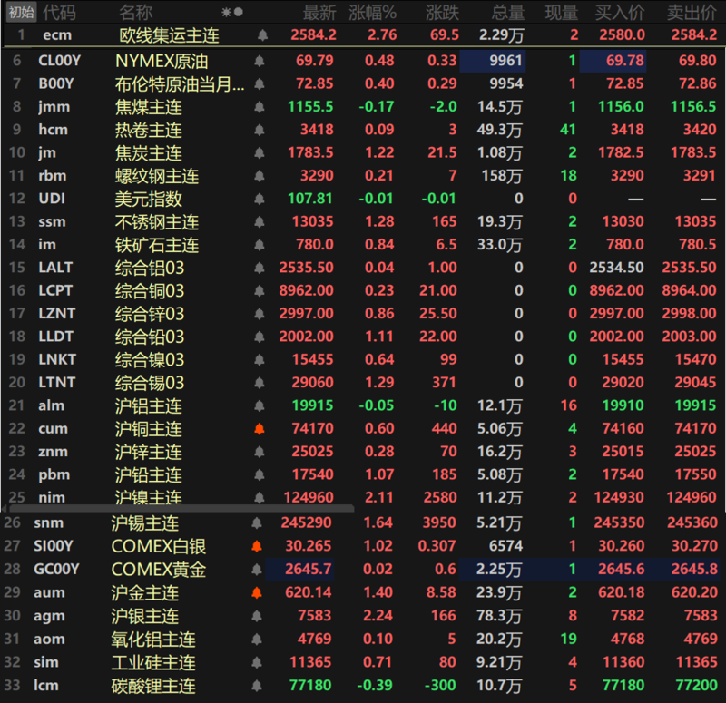 金属普涨内盘基本金属多涨逾1%沪镍、沪银、欧线集运涨超2%【SMM日评】
