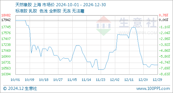 12月30日生意社天然橡胶基准价为16662.00元/吨