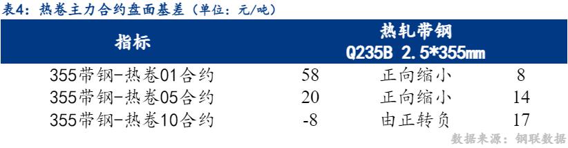 24日市场热卷05合约与355带钢价差正向缩小14元/吨,热卷01合约与355带钢价差正向缩小8元/吨。