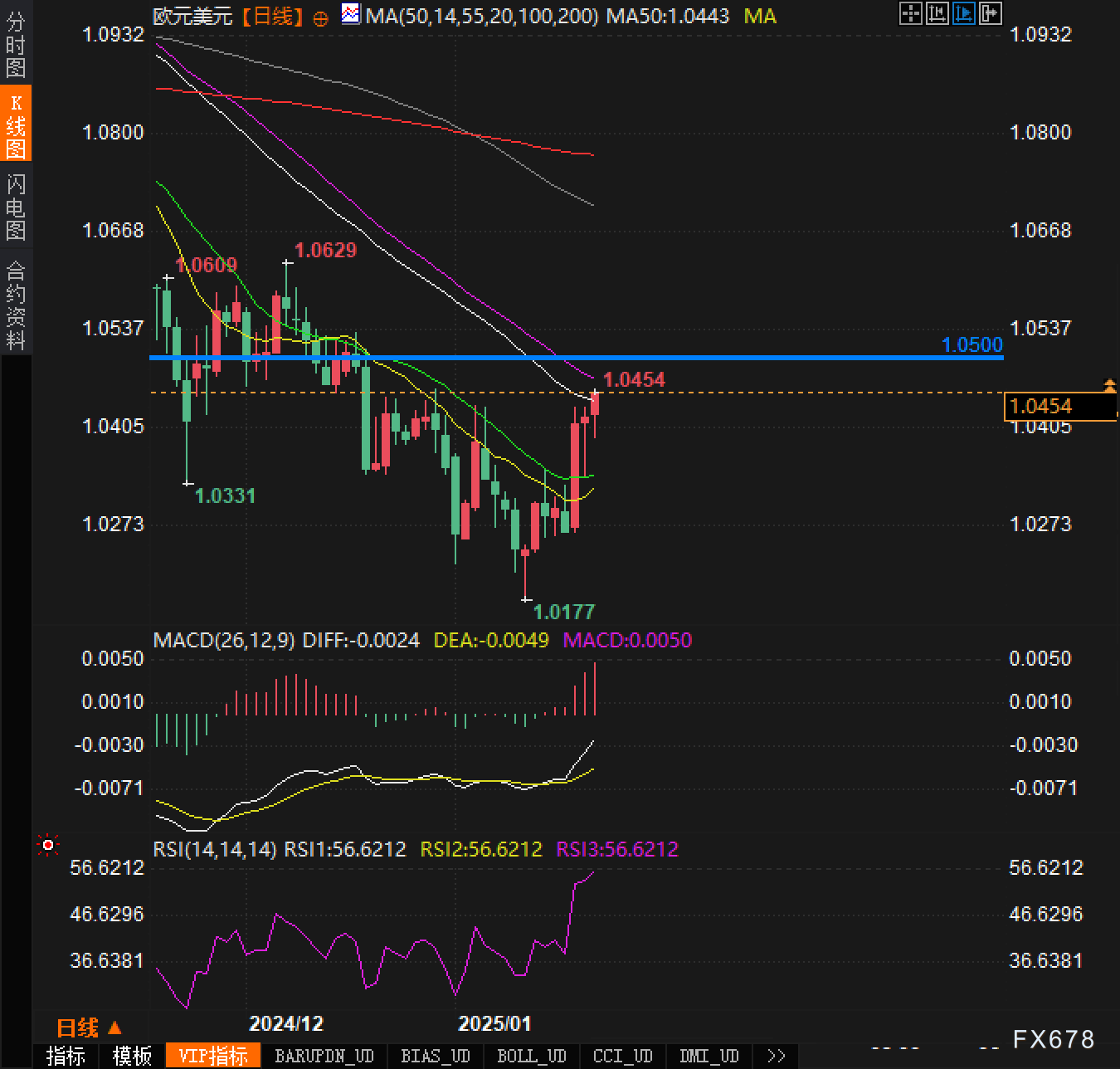尽管欧元/美元在近期交易日内显著反弹,但其未来走势仍存在不确定性。一方面,特朗普威胁可能对欧盟征收关税,这为欧元带来了潜在风险;另一方面,欧洲央行计划进一步放宽政策以接近中性目标利率2%,也可能对欧元产生影响。