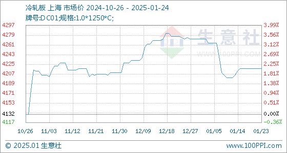 1月24日生意社冷轧板基准价为4217.50元/吨