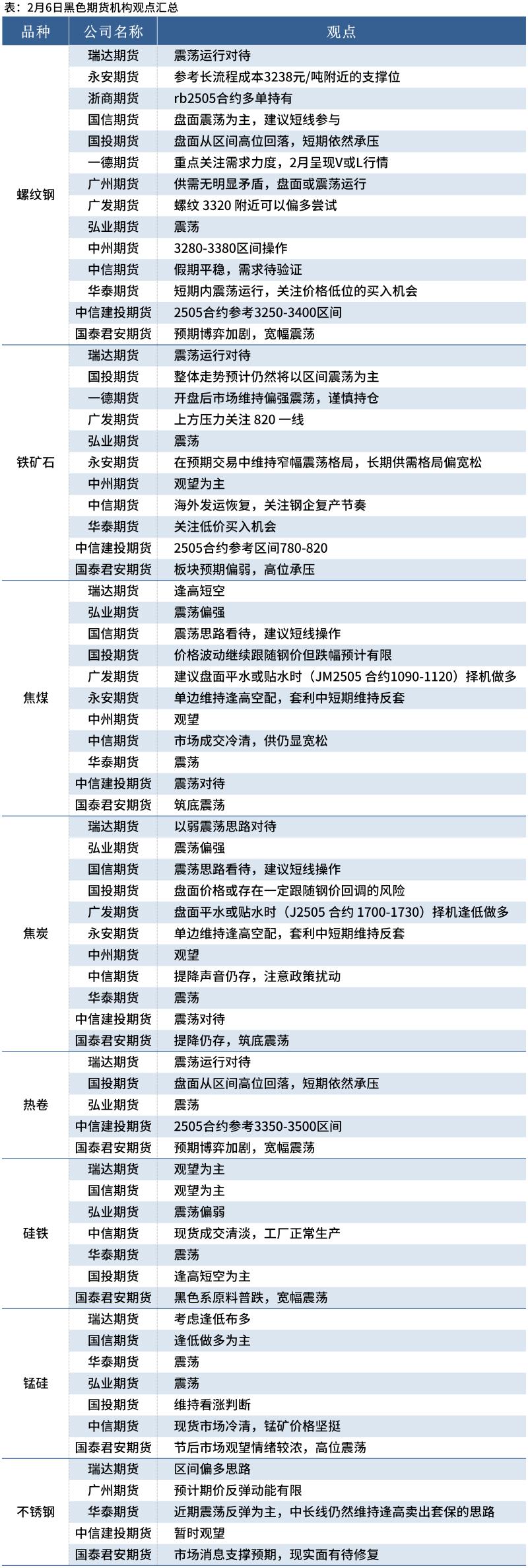 据Mysteel统计2月6日14家期货机构操作策略,其中多数机构料螺纹钢震荡运行,铁矿石震荡运行,双焦震荡运行。