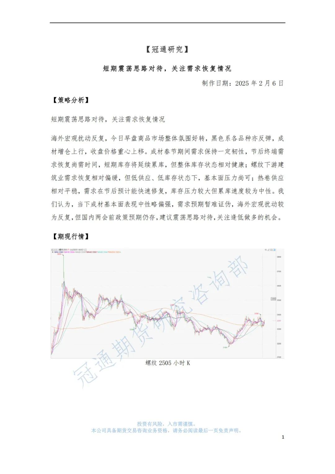 冠通研究--螺纹钢&热卷策略:短期偏弱震荡,关注需求恢复情况