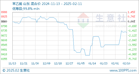 2月11日生意社苯乙烯基准价为8716.00元/吨