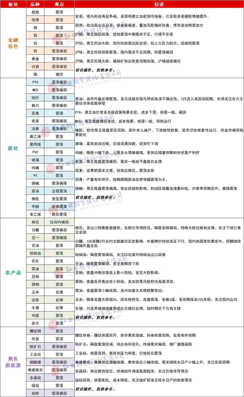 【期市早参】周五市场总体偏弱,合成橡胶领涨,黄金沪镍大跌!2025-3-3