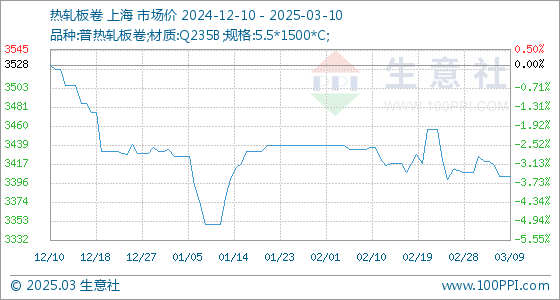 3月10日生意社热轧板卷基准价为3404.00元/吨