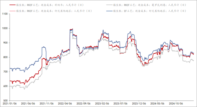 2024年印尼 RKAB 审批缓慢导致2024年矿石的结构性矛盾,据公开报道数据显示,印尼镍矿石2024年实际产量为2.15亿吨,并创纪录进口了菲律宾镍矿石以补充国内不足。根据中央统计局(BPS)的数据,在2024年或2024年1月至11月的11个月期间,印度尼西亚进口了约1026万吨镍矿石。综合来看,印尼2024年全年的镍矿石需求实际在2.4亿吨左右。2025年,印尼已经公布配额情况整体矿石供应趋宽松,且与2024年初的审批缓慢造成的内贸价格持续回升所面临的紧张情况大为不同。