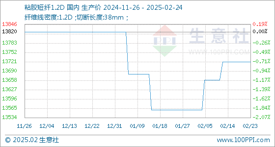 2月24日生意社粘胶短纤1.2D基准价为13720.00元/吨
