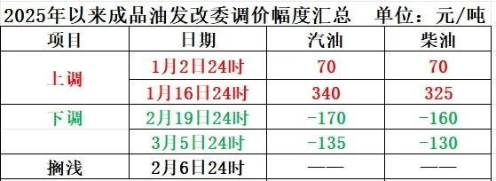 2025年以来,国内成品油零售限价已经历五轮调整,分别为“两涨两跌一搁浅”。
