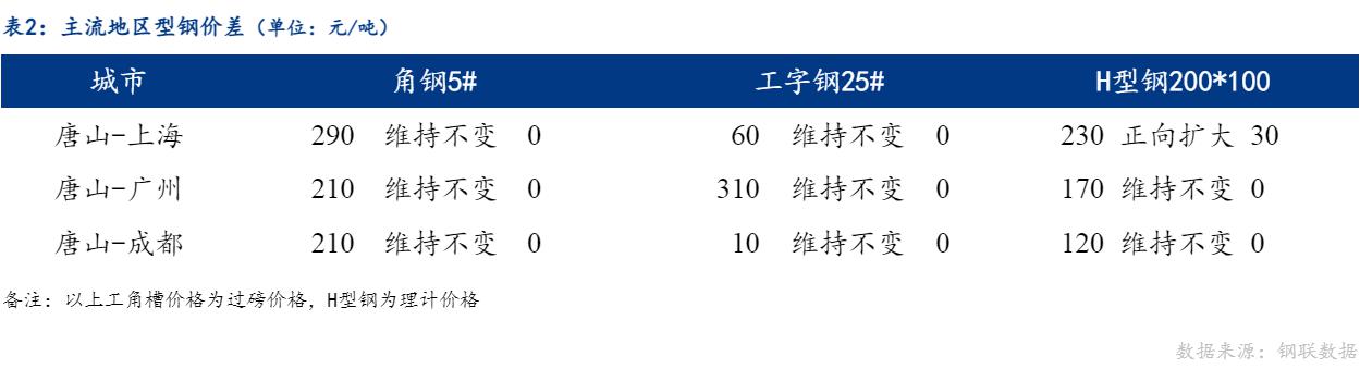2、成交量为20家型钢厂当日成交,其中包括工字钢6家、角钢7家、槽钢7家。
