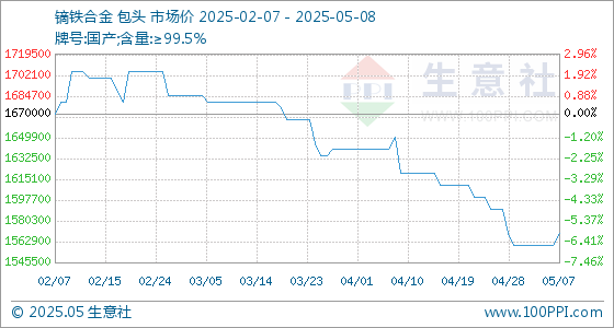 5月8日生意社镝铁合金基准价为1570000.00元/吨