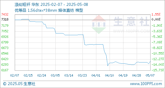 5月8日,生意社涤纶短纤基准价为6377.50元/吨,与本月初(6351.46元/吨)相比,上涨了0.41%。