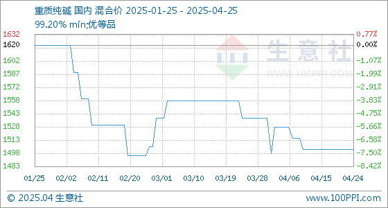 4月25日生意社重质纯碱基准价为1502.50元/吨