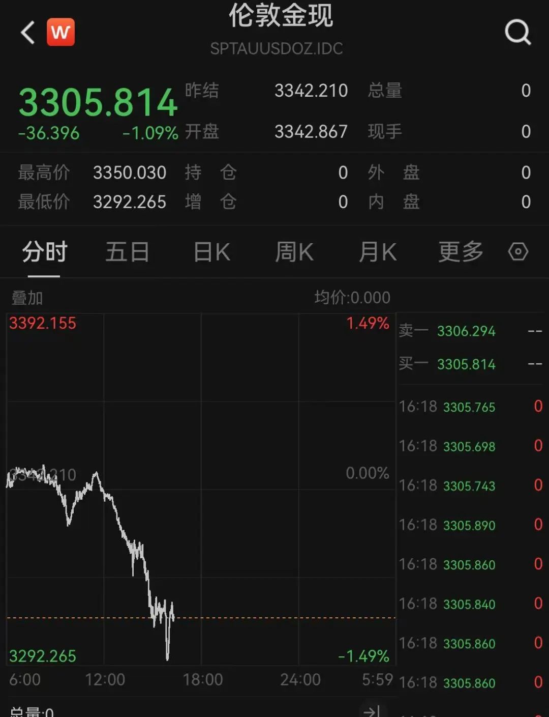 而黄金则直线下跌,截至发稿,现货黄金跌超1%。