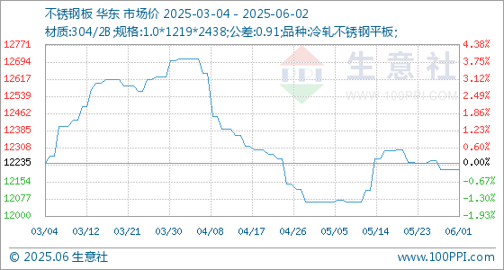 6月2日生意社不锈钢板基准价为12207.14元/吨