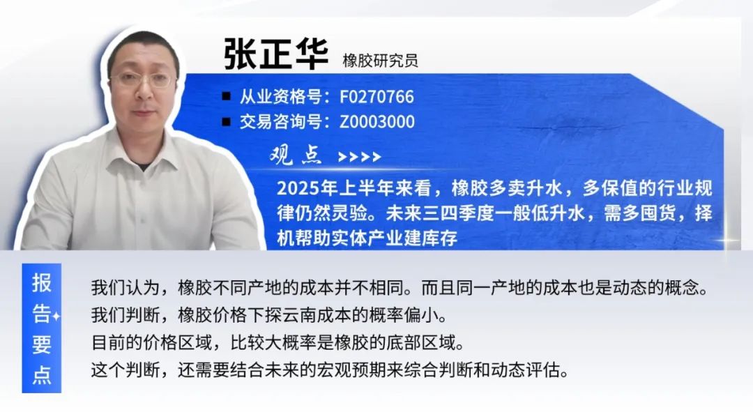 我们判断,橡胶价格下探云南成本的概率偏小。