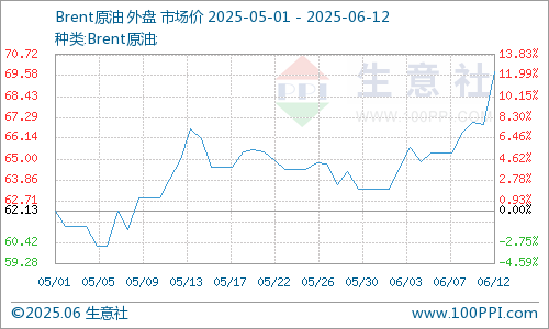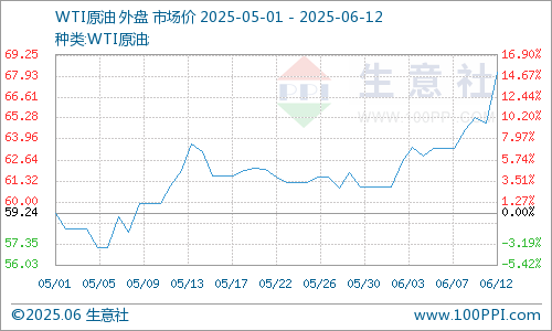 6月11日,国际原油期货大幅跳升。美国WTI原油期货7月合约结算价报68.15美元/桶,涨幅3.17美元或4.9%。布伦特原油期货8月合约结算价报69.77美元/桶,涨幅2.90美元或4.3%。油价升至两个月以来高点,主因中东地区紧张局势升温。