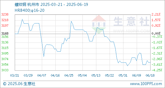 6月19日生意社螺纹钢基准价为3064.00元/吨