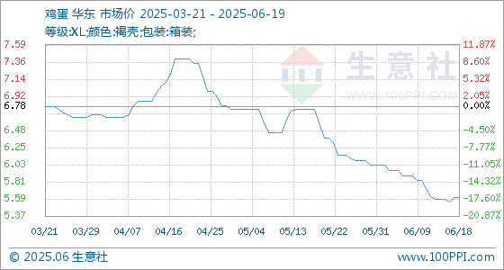 6月19日生意社鸡蛋基准价为5.60元/公斤