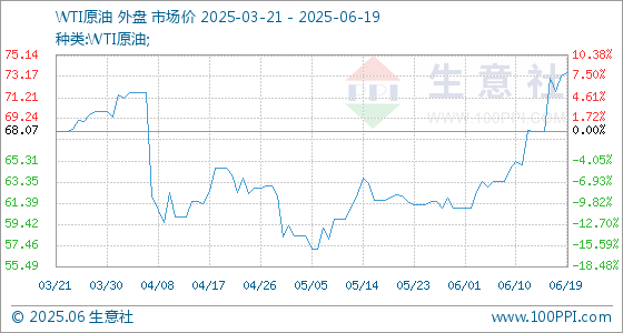 6月19日生意社WTI原油基准价为73.27美元/桶