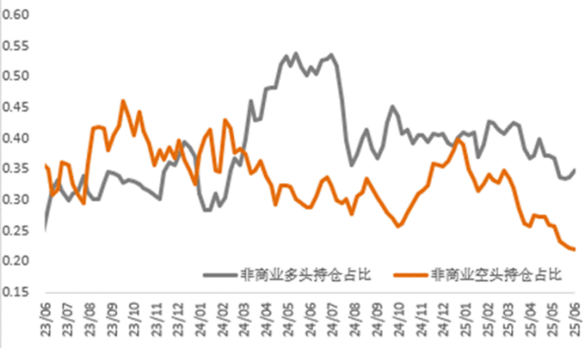 持仓方面,从CFTC持仓来看,上周非商业空占比维持低位,目前空头持仓占比回到了历史低位区间,单从持仓来看,并没有特别明显的指引。