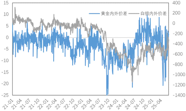 近期人民币汇率影响较前期减弱,上周黄金内外价差及内外比价有所下降,白银内外价差及内外比价有所回升。