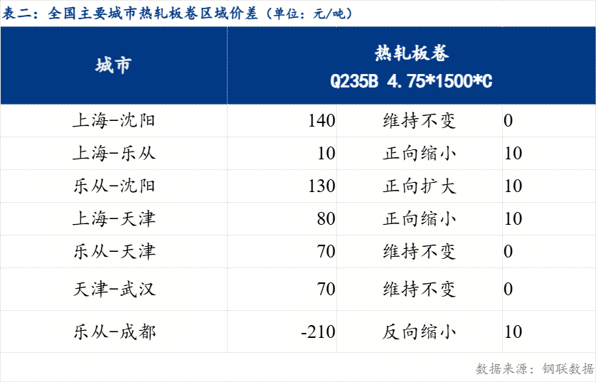 从区域价差来看,华东与东北价差140元/吨,较上一交易日维持不变;华东与华南价差10元/吨,较上一交易日正向缩小10元/吨;华南与华北价差70元/吨,较上一交易日维持不变。
