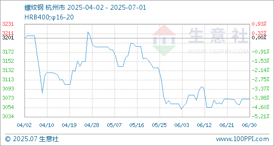7月1日生意社螺纹钢基准价为3072.00元/吨