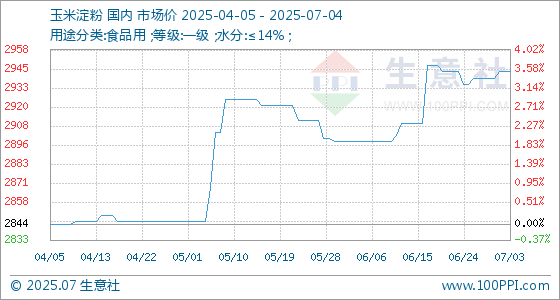 7月4日生意社玉米淀粉基准价为2944.00元/吨