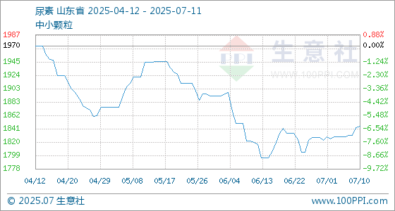 7月11日,生意社尿素基准价为1845.00元/吨,与本月初(1823.00元/吨)相比,上涨了1.21%。