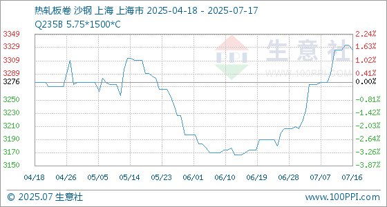 7月17日生意社热轧板卷基准价为3326.67元/吨