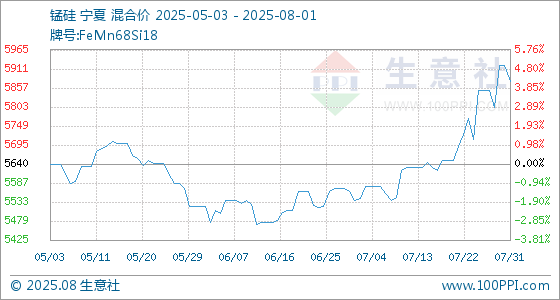 8月1日生意社锰硅基准价为5876.00元/吨