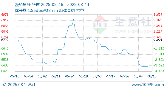 8月14日生意社涤纶短纤基准价为6483.33元/吨