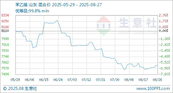 8月27日生意社苯乙烯基准价为7618.00元/吨