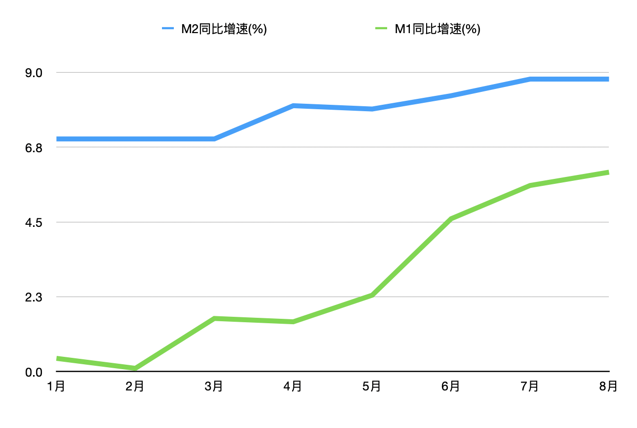 ——8月末,M2余额同比增长8.8%,M1余额同比增长6%。